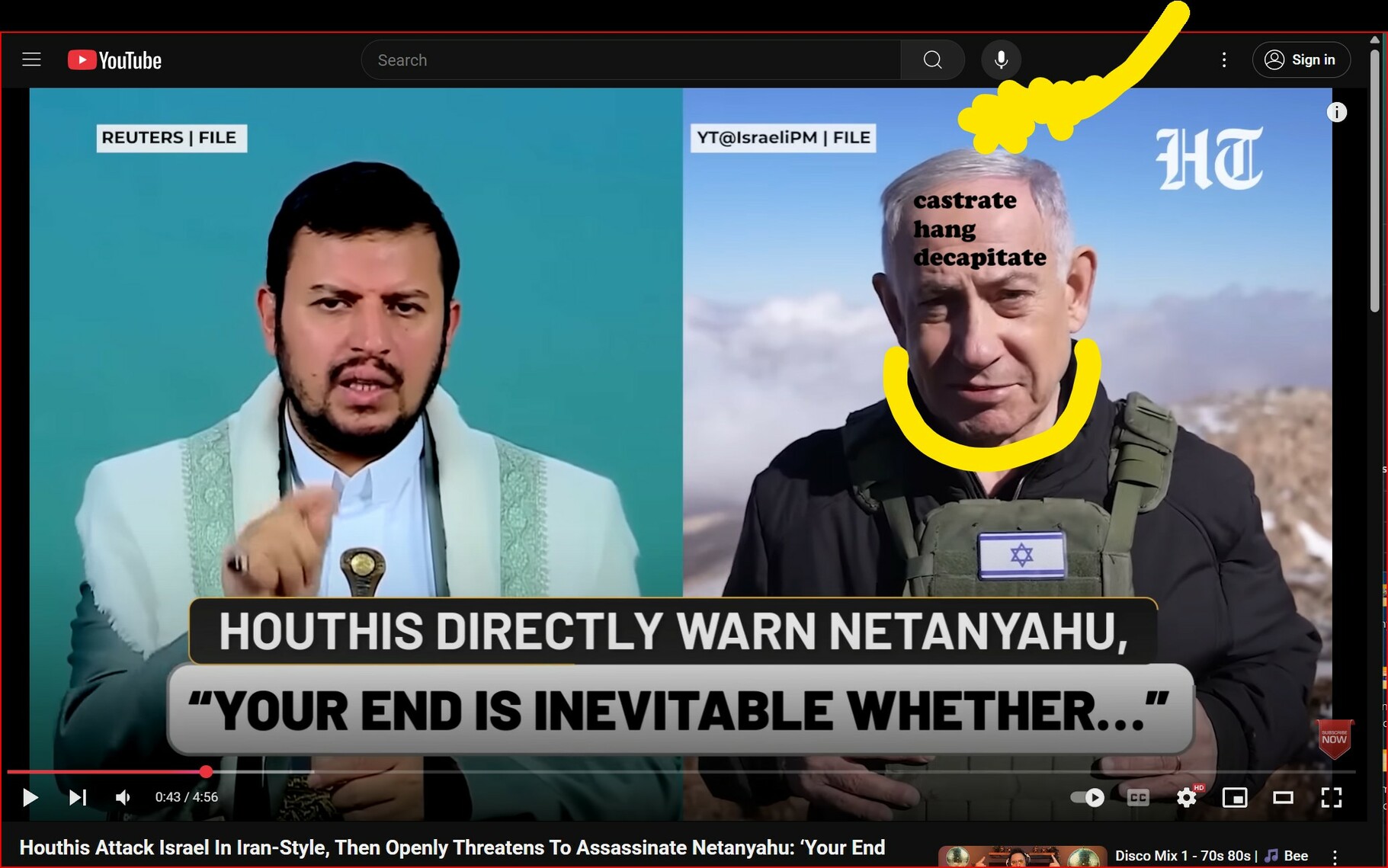 Elon Musk, head in his hands, Trump screaming and finally ending with both him and Benjamin Netanyahu sharing a prison cell, It’s cleverly done, it matches exactly the same style as the Trump video but is so much better in so many ways and it really needs to be garnering more attention than it appears to be getting in order to reclaim the narrative here.