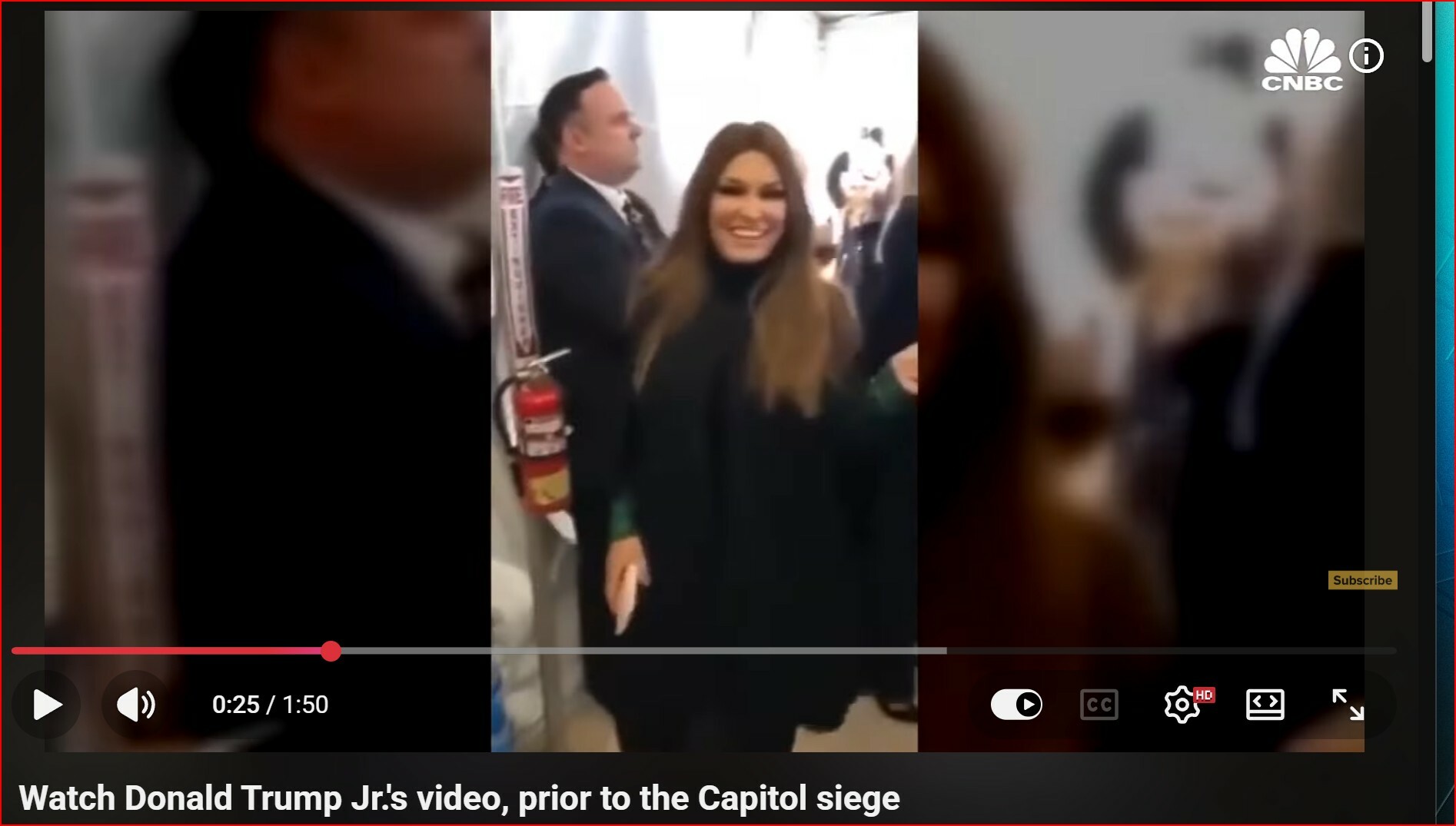 3: Watch Donald Trump Jr.'s video, prior to the Capitol_Siege | Video shows President Donald Trump, Don. Jr., other members of the Trump family backstage before the that was held prior to the Capitol_Riot. Due to copyright_restrictions on third-party music, this video does_not include sound.