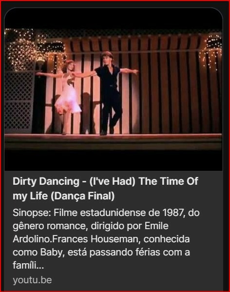 Sinopse: Filme estadunidense de 1987, do gênero romance, dirigido por Emile Ardolino.