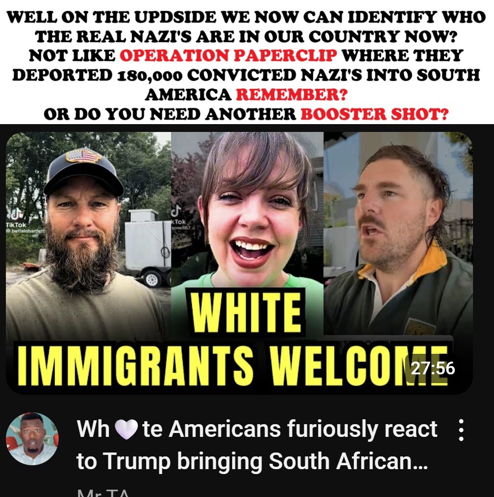 In this video, I react to TikTok clips of white Americans discussing the Trump administration’s decision to #deport thousands of #Latino immigrants while #welcoming over 8,000 #white #South_African ( #NAZI'S) immigrants with #full_government_support. We break down the double standards, the possible #racial bias, and ask the big question: is this really about #taxpayers’ money—or something #deeper? Watch until the end for my honest commentary. Let’s talk about it. B4 ITS TOO LATE!
