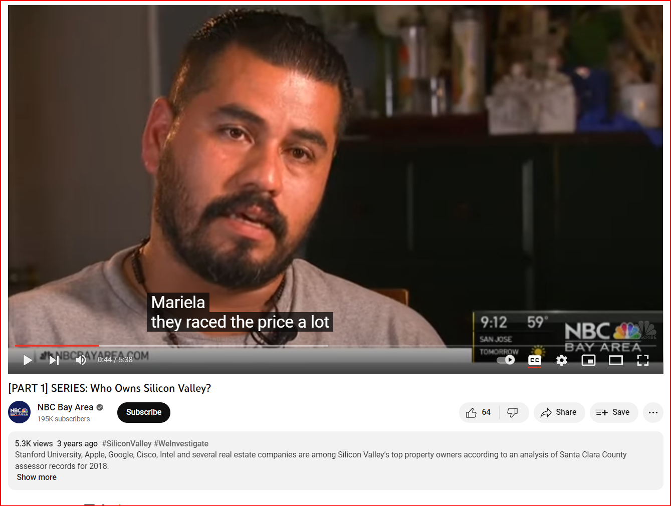 That analysis is the result of a year-long project from a team of reporters from NBC #Bay_Area, #Telemundo 48/Area #de_la_Bahia, The San Jose Mercury News, KQED and REVEAL from The Center for Investigative Reporting which examined in depth #roughly 500,000 #property_records on file at Santa Clara County’s Property Assessor’s Office, California.