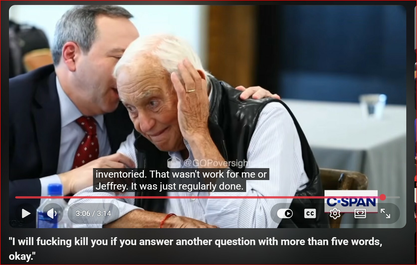 At the end of this exchange, #Les_Wexner's lawyer says to him, "I will f*cking kill you if you answer another question (" #BACKWARDS ") with more than five words, okay."