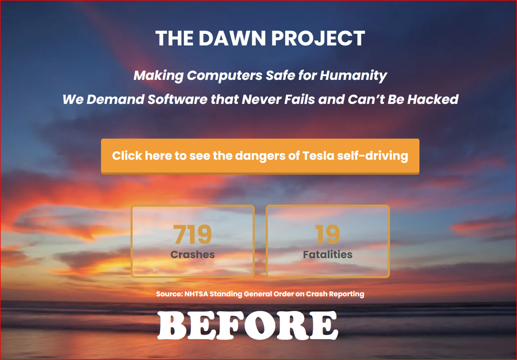 #TESLA DROPS ON #NHTSA_REPORT | #Critical_Safety Issues #Revealed By The Dawn Project’s #Testing Of #Tesla Full #Self_Driving | THE #DAWN_PROJECT | Making Computers #Safe for #Humanity | We #Demand #Software that #Never_Fails and #Cant Be #Hacked!