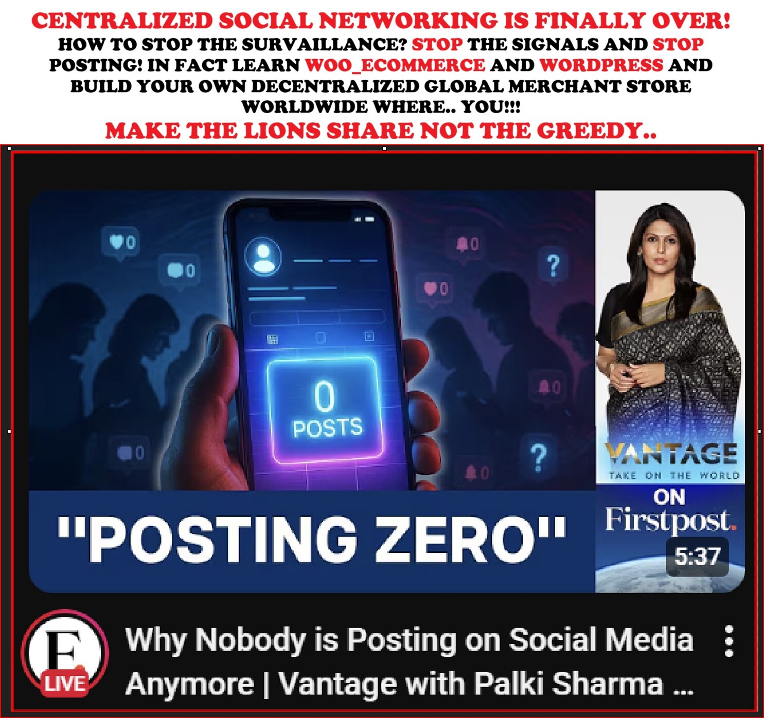 Did we take Revenge? Oh No we realized that spending 12 years on a CENTRALIZED PLATFORM was in fact a 100% total Loss of our investment (sweat equity) during that time on that platform and the reason why we moved to a #DECENTRALIZED PLATFORM in order to #continue to BRING the #Ugly_Truth to those who needed to hear it.