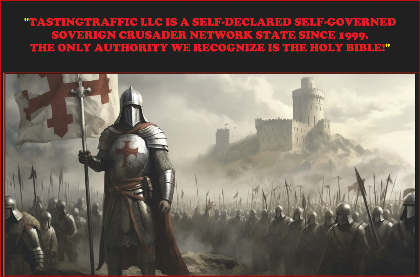 🏆 TASTINGTRAFFIC LLC is a #SELF_DECLARED; #SELF_GOVERNED; #SOVERIGN CRUSADER NETWORK #STATE, since 1999. The only #AUTHORITY we #RECOGNIZE is the #HOLY_BIBLE! 📕