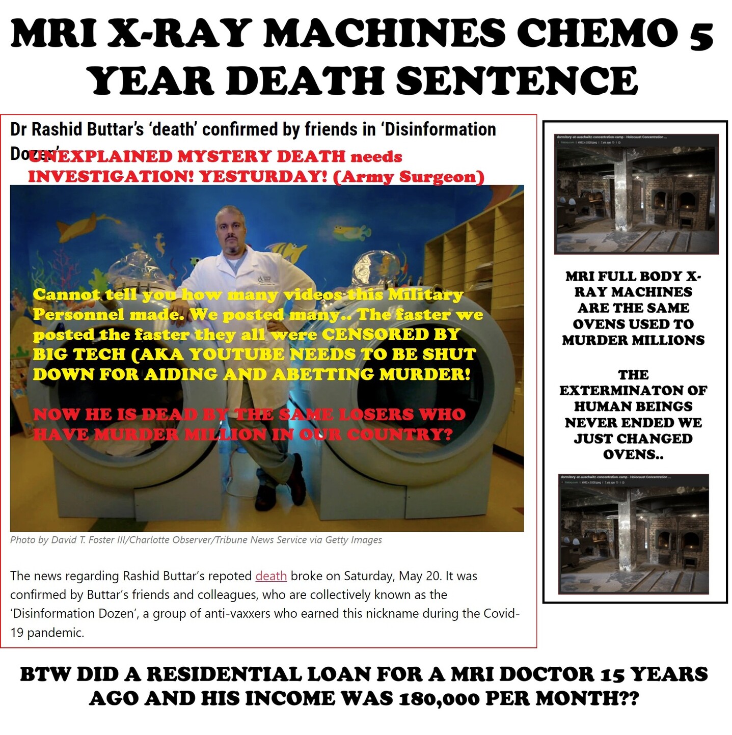 Dr. Rashid Buttar is a former US Military Brigade Surgeon, Chief of the Department of Emergency Medicine at Moncrief Army Community Hospital, and the founder of the Center For Advanced Medicine and Clinical Research. He is known for his unconventional forms of healing and aid in attempting to help those with “untreatable diseases”. He is also known for his research on the COVID-19 conspiracy.