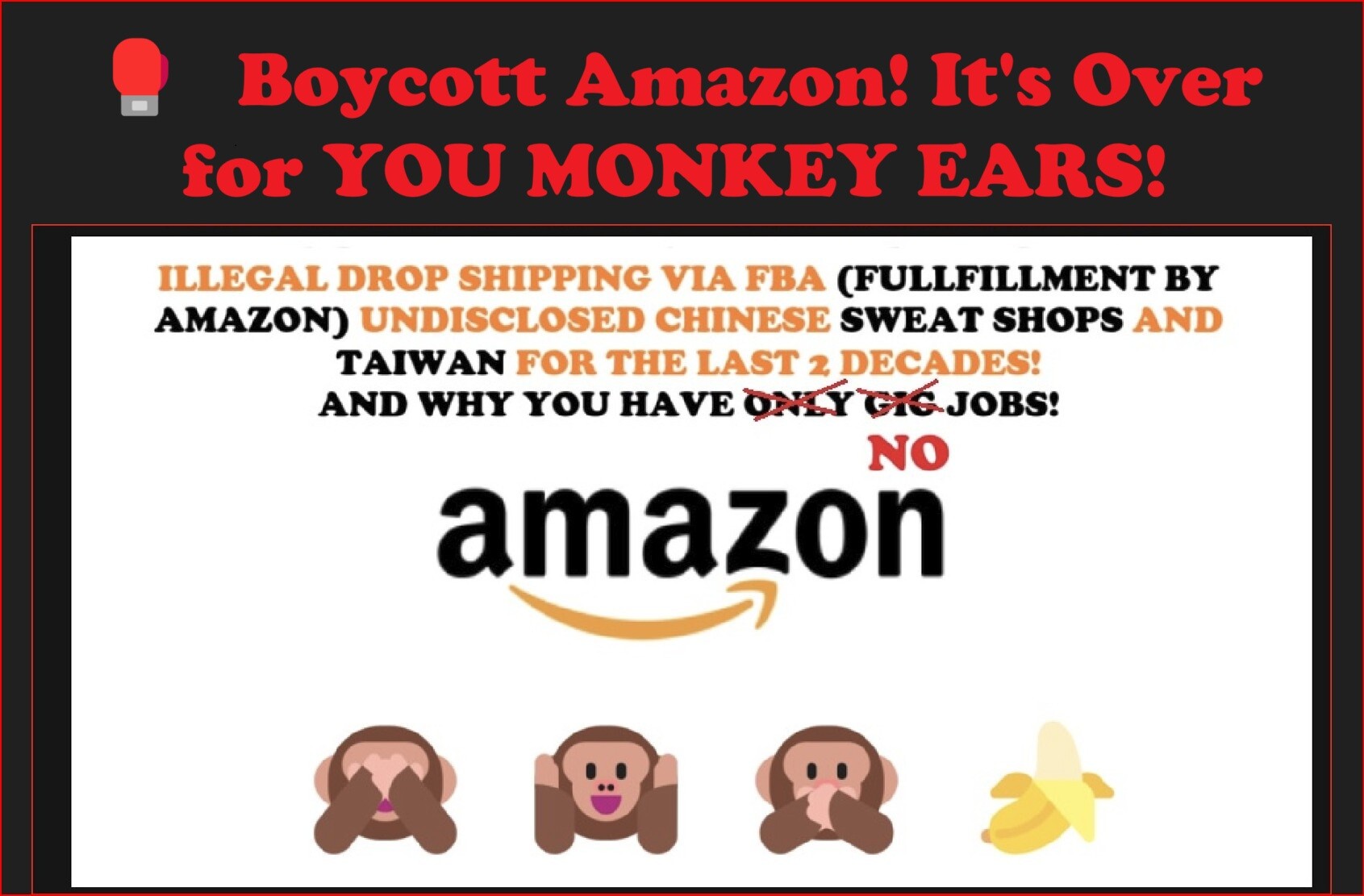 🥊 #BOYCOTT CEO 💩 #JEFF_BEZOS #FBA #Fulfillment_BY_AMAZON WORLDWIDE!. #AMAZON! and #WALMART!