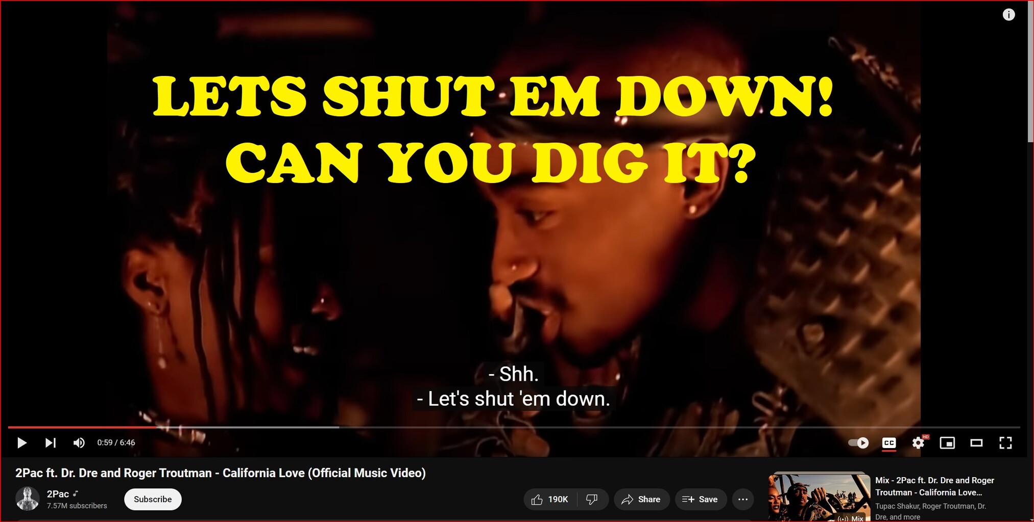 #2Pac ft. Dr. #Dre and #Roger_Troutman - #California_Love (Official Music Video) 10,118,192 views Feb 17, 2021 #2Pac #DrDre #CaliforniaLove
